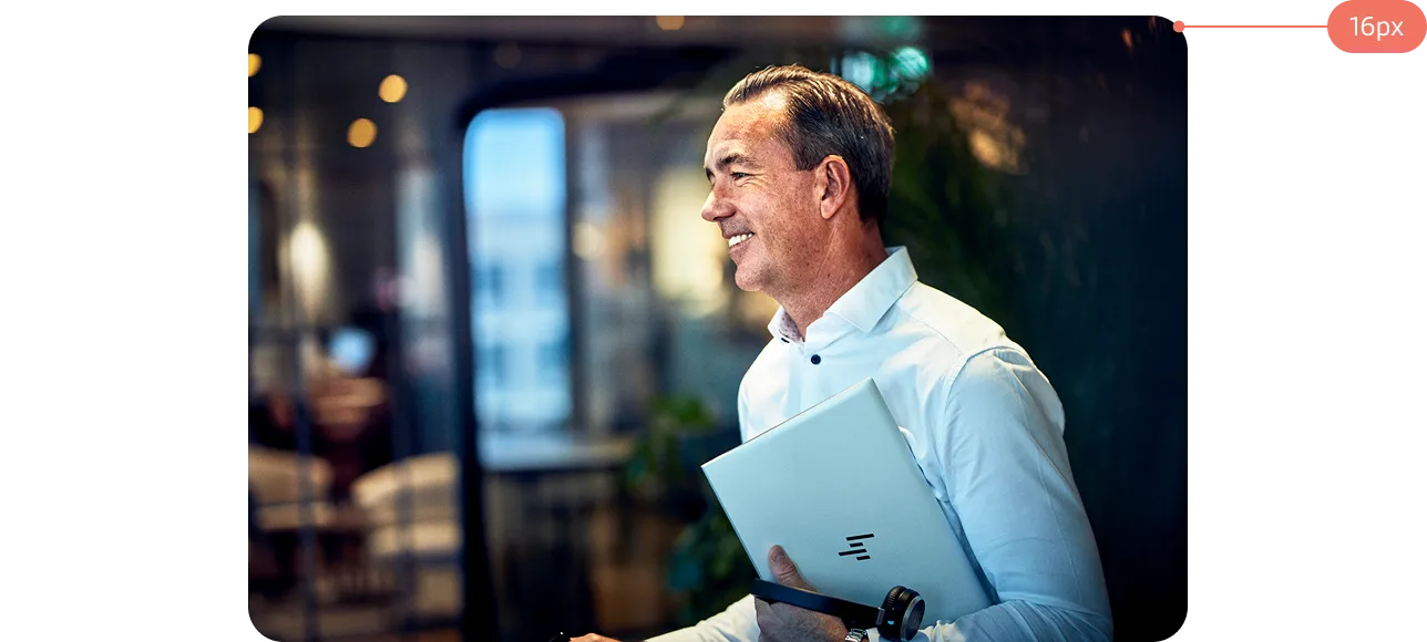 Our visual design language is defined and built around the Maersk symbol, more specifically it is the language of the round corners of the container. Making the curvature of borders an important part of our design language, contributing to the overall brand recognition and ensuring a consistent look and feel across all our components.