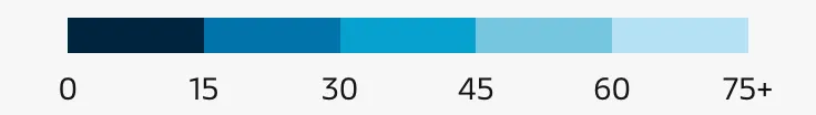 Sequential colours are ordered. Use these for ordinal and interval scales. It’s also acceptable to use these for ratio scales. Do not use these for categorical scales.